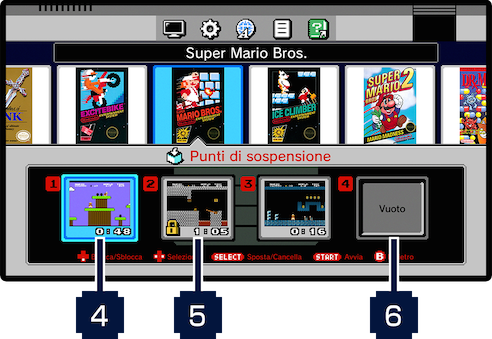 Premendo il pulsante RESET mentre giochi, creerai automaticamente un punto di sospensione non salvato.